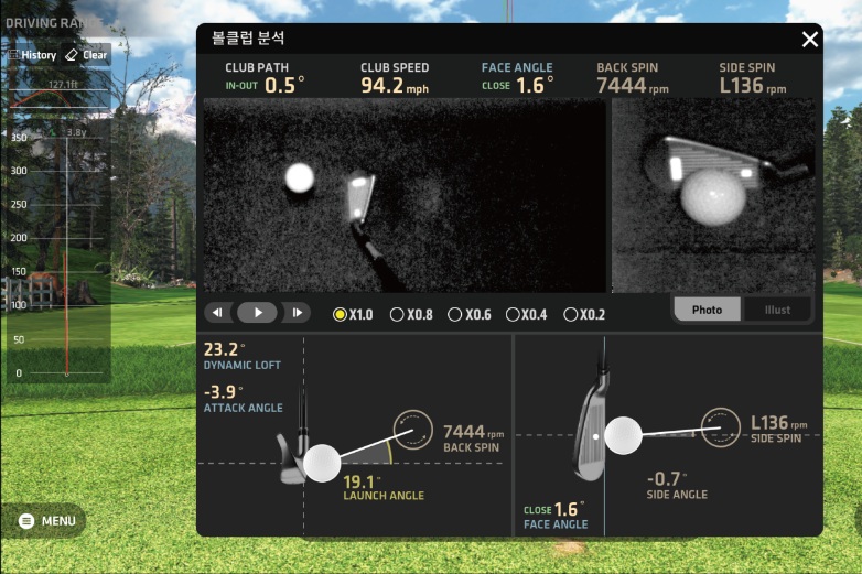 초당 3,000프레임 이상급 초고속 카메라로 볼의 스핀까지 정확히 측정하여 임팩트 순간 전후의 볼 스핀 영상과 클럽 움직임을 실시간으로 보여줍니다.